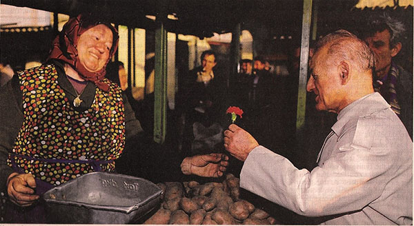 Nu moet elke stem worden gewonnen, de socialist Nyers biedt een anjer aan!